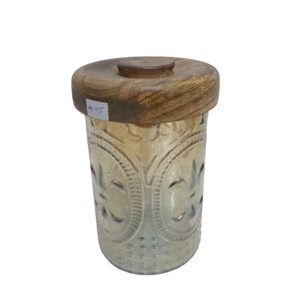 โถแก้วทรงกลมทำจากไม้พร้อมฝาปิดสีน้ำตาลและสีธรรมชาติขนาดกลางทำด้วยมือดีไซน์ทันสมัย