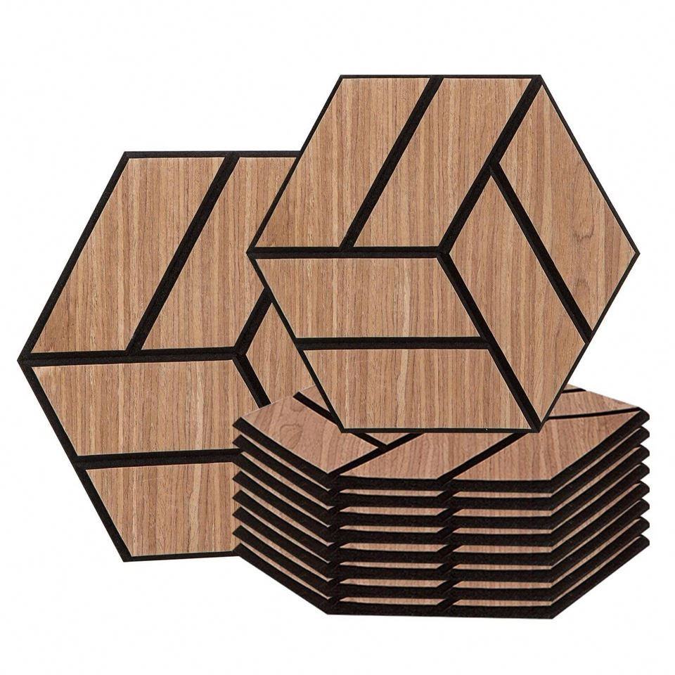 แผ่นผนังไม้ตกแต่งรูปหกเหลี่ยมแบบมีกาวในตัว ดีไซน์ทันสมัย พร้อมแผ่นสักหลาดซับเสียง ลายกราฟิกดีไซน์