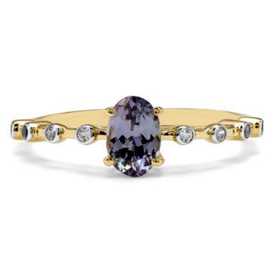 แหวนทองคำสีเหลือง14K ประดับเพชร Tanzanite ดีไซน์ทันสมัยทำด้วยมือทรงรีสไตล์คลาสสิกสำหรับงานแต่งงาน