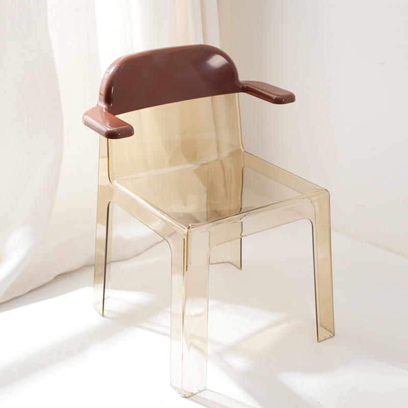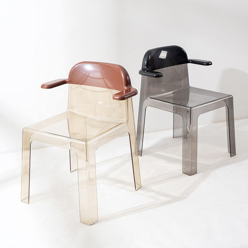 เก้าอี้ทานข้าวดีไซน์ทันสมัย โปร่งใส ทำจากอะคริลิกพลาสติก ทนทาน พร้อมที่วางแขน พนักพิงสวยงาม ใช้ได้ทั้งภายในและภายนอกบ้าน เหมาะสำหรับร้านอาหาร