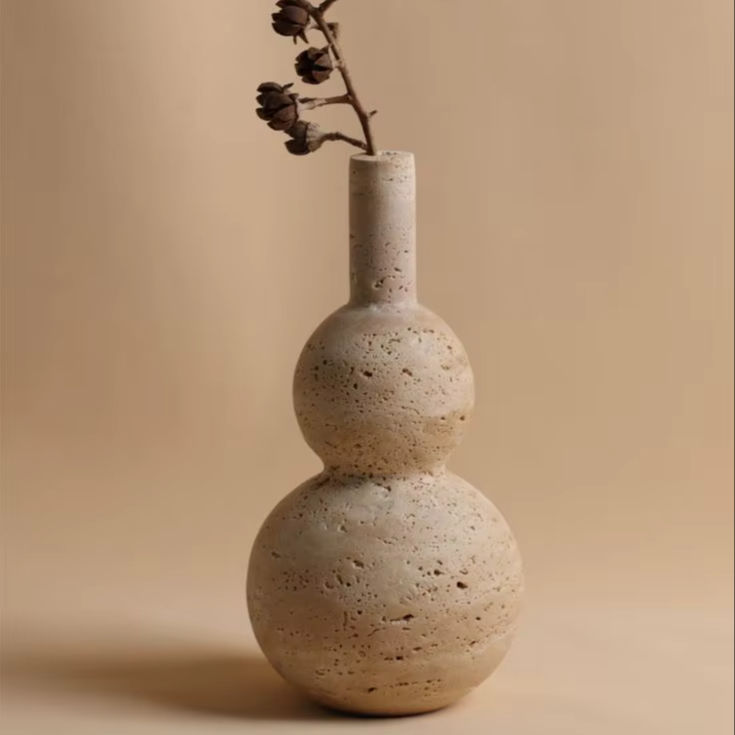 แจกันดอกไม้หินอ่อนสไตล์ทราเวอร์ตินดีไซน์ทันสมัยสำหรับจัดแสดงดอกไม้และอุปกรณ์ตกแต่งบ้านที่หรูหรา