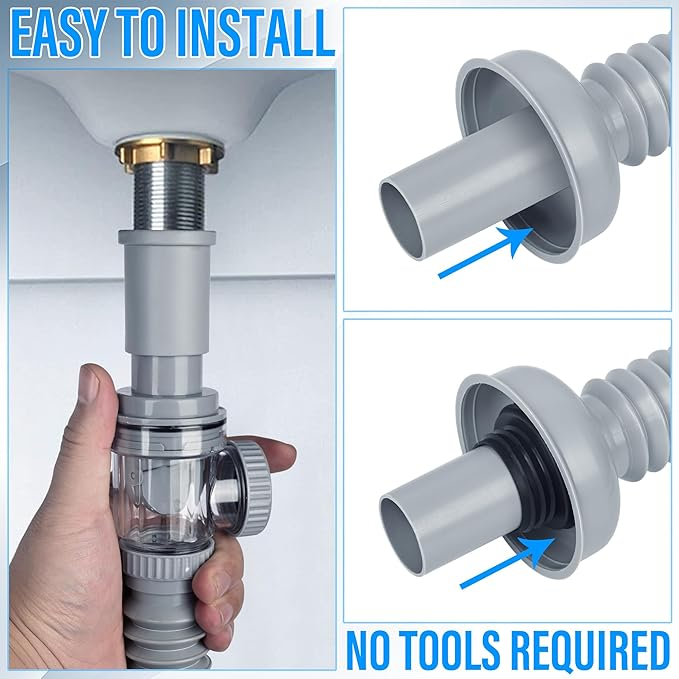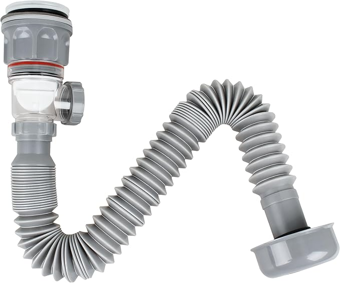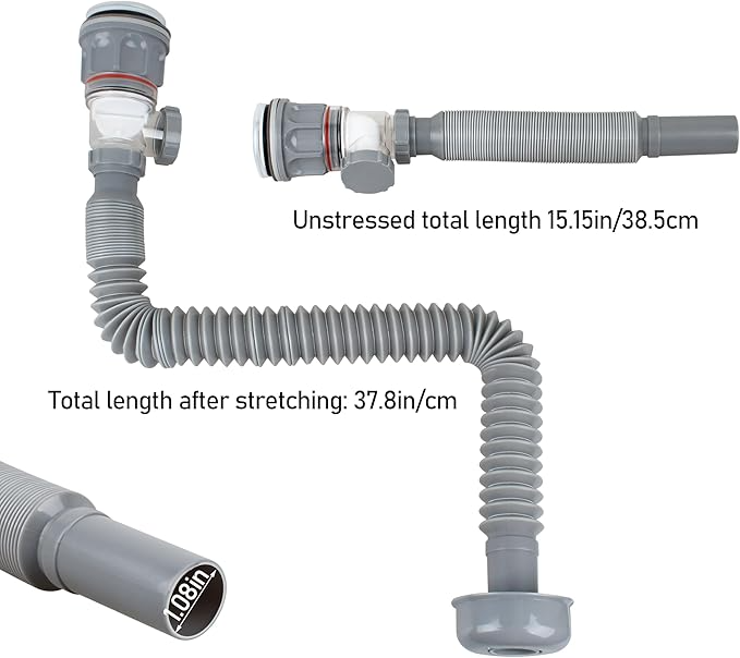 ท่อระบายน้ำอ่างล้างหน้าดีไซน์ทันสมัย สีเทาเข้ม ขยายได้ สแตนเลสชุบโครเมียม ติดตั้งง่าย