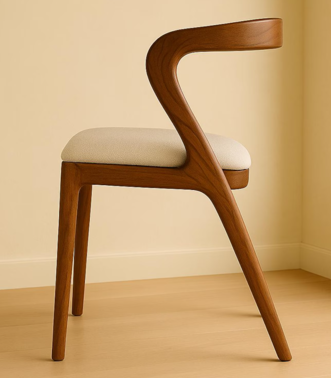 เก้าอี้ทานอาหารไม้สักแท้ ดีไซน์ทันสมัย เบาะหุ้มหนังสังเคราะห์ ผิวไม้ธรรมชาติ พนักพิงโค้งมน