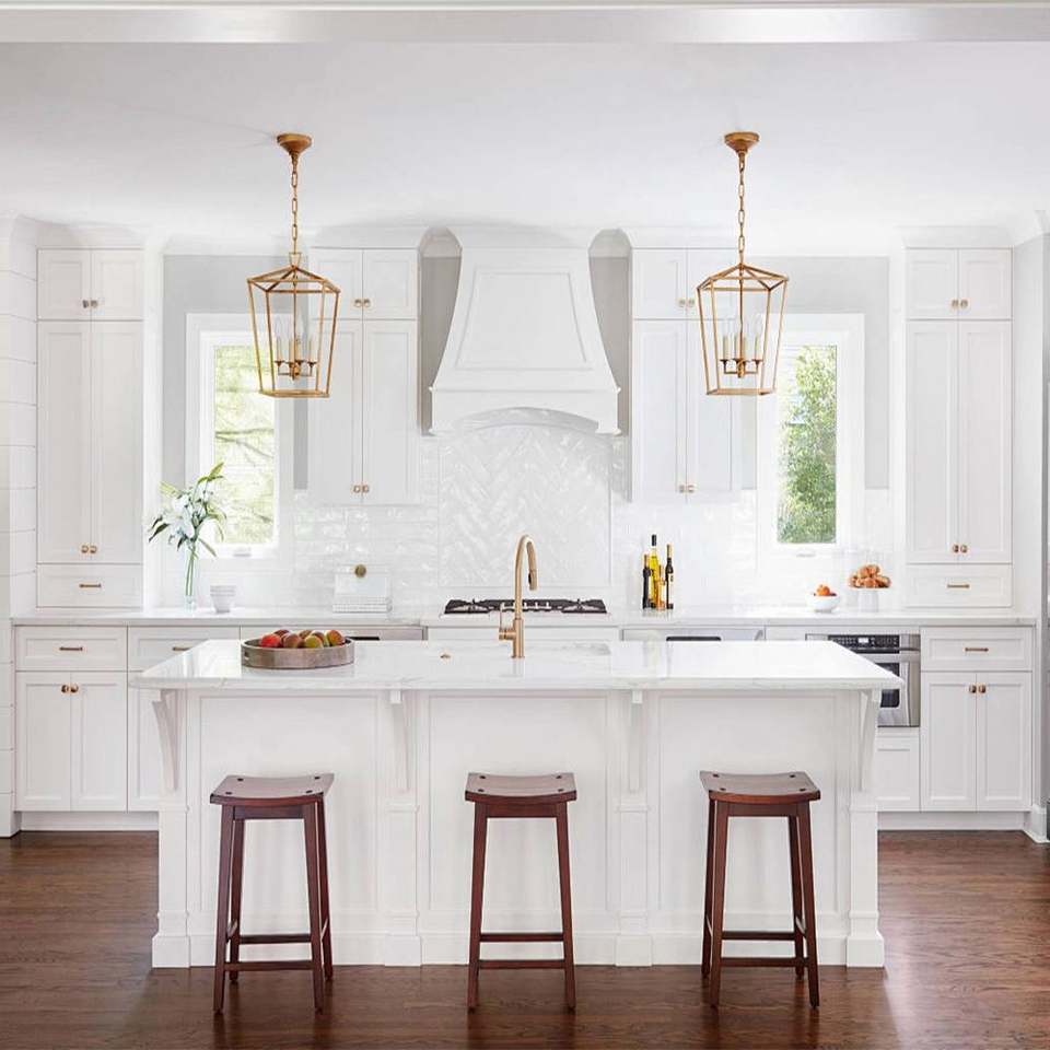 ตู้ครัวโมดูลาร์สีขาวแบบโมเดิร์นเคลือบแลคเกอร์ พร้อมเคาน์เตอร์หินอ่อน ขนาดสั่งทำ ชุดตู้ครัวสไตล์เชคเกอร์สำหรับบ้านพักตากอากาศ