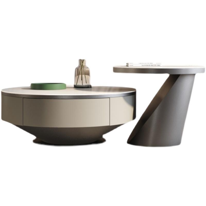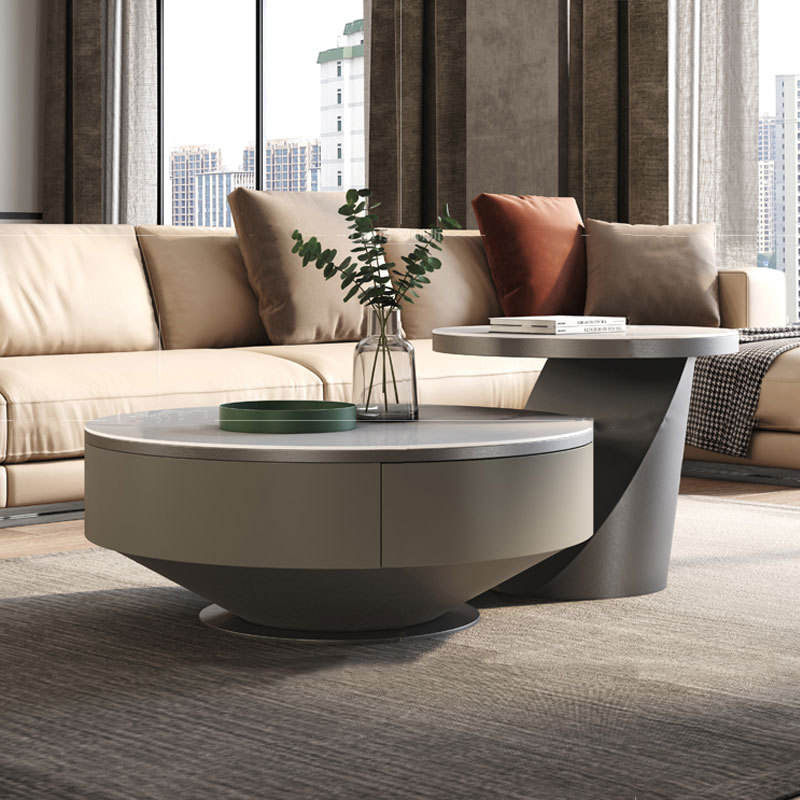 ชุดโต๊ะกาแฟหินชนวนหินอ่อนสีขาวแบบทันสมัยเฟอร์นิเจอร์ไม้โต๊ะกลางโลหะสีทองหรูหราสำหรับห้องนั่งเล่น