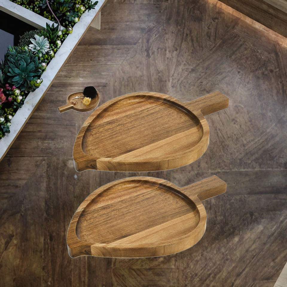 Modern Design Wood Food Fruit & Snack Trays Non-Toxic Eco-Friendly Durable Rectangle Shape 5-Piece Set for Party Use
