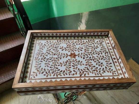 ถาดไม้สี่เหลี่ยมแบบฝังทันสมัยสำหรับเสิร์ฟอาหารเช้าอาหารว่างมื้อค่ำ