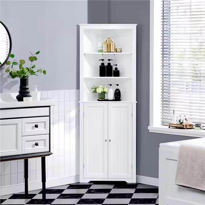 ตู้เก็บของติดผนังห้องน้ำทรงมุมไม้ดีไซน์ทันสมัย