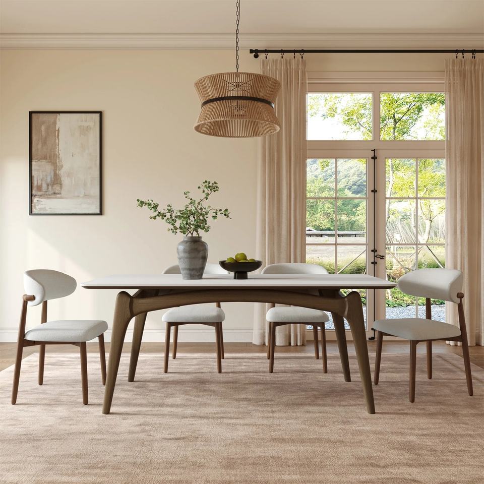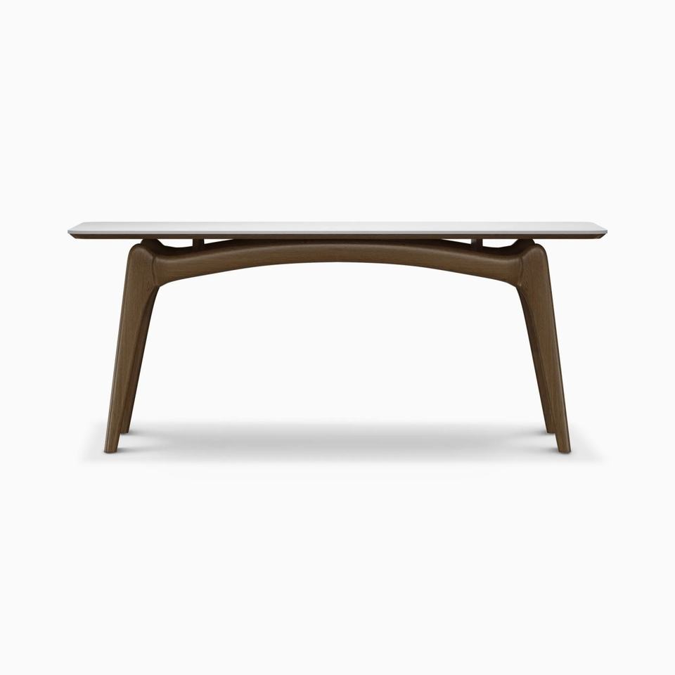 โต๊ะรับประทานอาหารดีไซน์ทันสมัย โครงไม้ ท็อปหินอ่อนสีขาว ขาโค้ง สำหรับบ้าน อพาร์ทเมนท์ โรงแรม