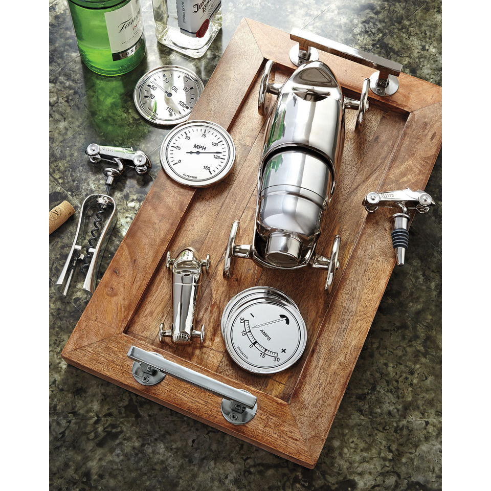 ถาดเสิร์ฟไม้ดีไซน์ทันสมัยถาดโชว์ของพร้อมที่จับโลหะจานสีเงินดีไซน์หรูหรา