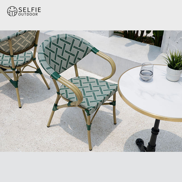 เก้าอี้รับประทานอาหารในสวนทำจากอลูมิเนียมเก้าอี้ผ้าแบบวางซ้อนกันได้สำหรับกิจกรรมกลางแจ้งในสวนใช้งานในครัวและวิลล่า