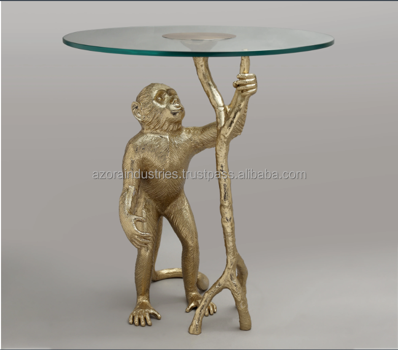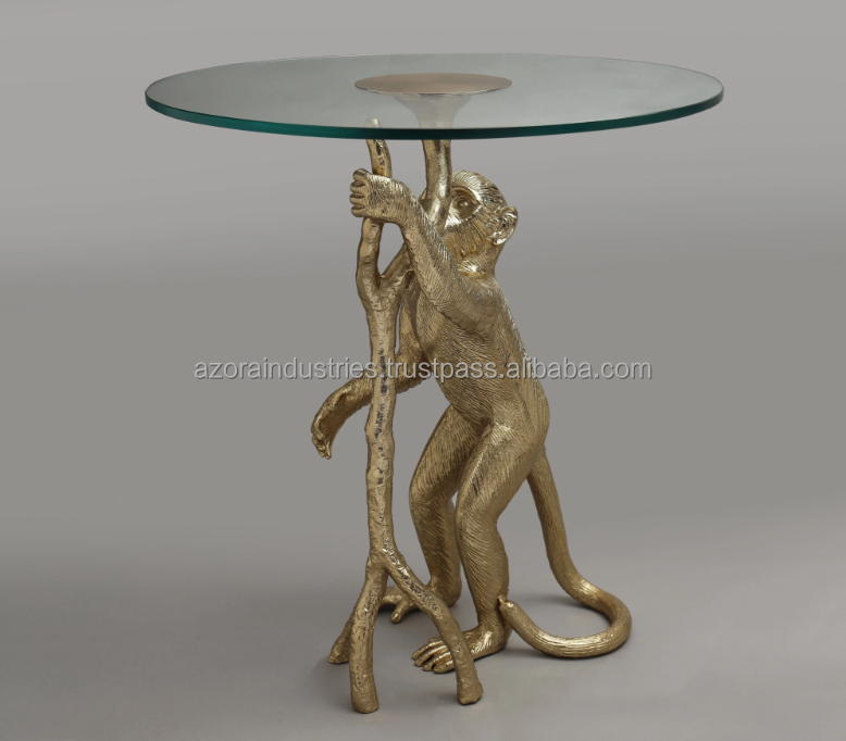 โต๊ะข้างฐานลิงทำจากอลูมิเนียมสำเร็จรูปสีทองดีไซน์ทันสมัยกระจกลอยใสสำหรับบ้านห้องนอนห้องนั่งเล่นโดยอุตสาหกรรม azora