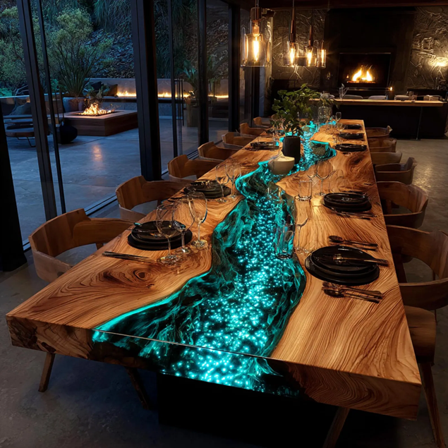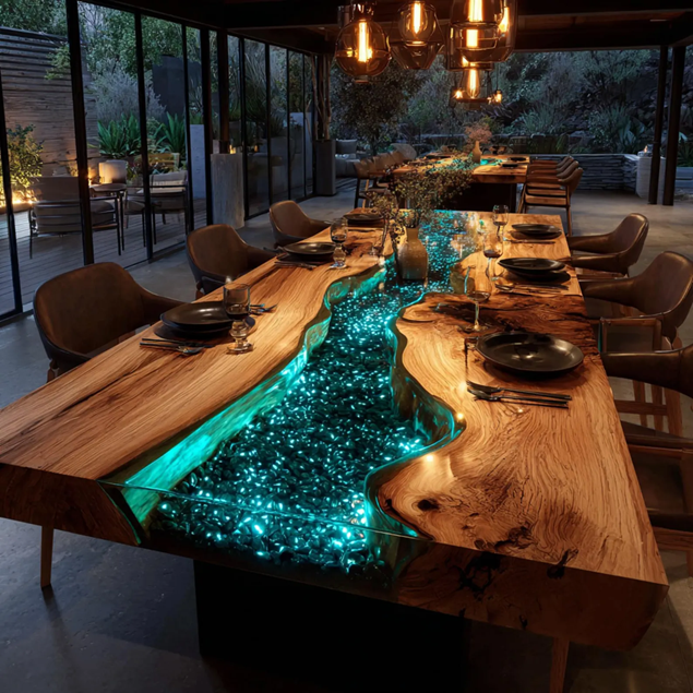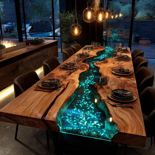 โต๊ะไม้กระถินเทศเคลือบเรซิ่นทรงสี่เหลี่ยม ดีไซน์ทันสมัย หรูหรา ออกแบบตามสั่ง ทนทาน กันน้ำ เหมาะเป็นของขวัญวันดิวาลีหรือวันเกษียณ