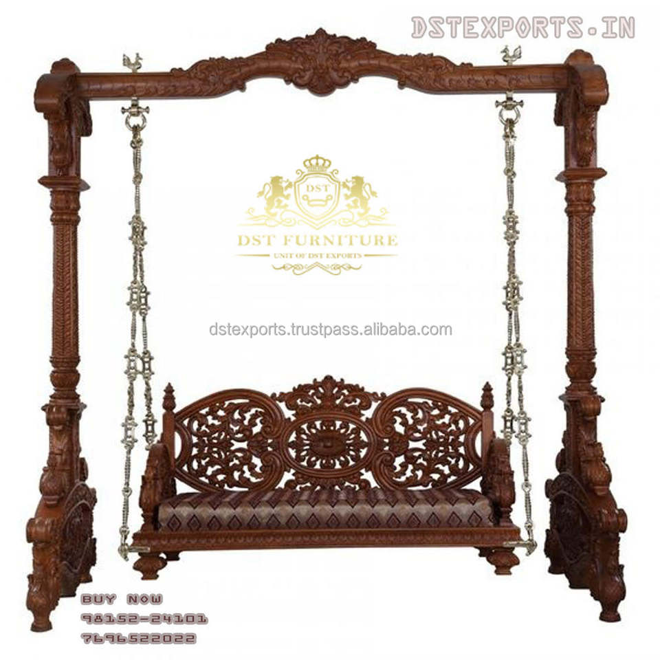 Designer Hand Carved Teak Wooden Jhula For Home