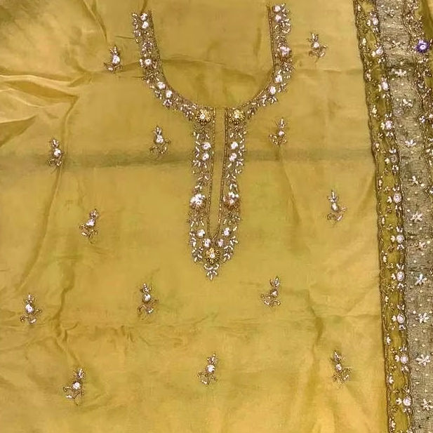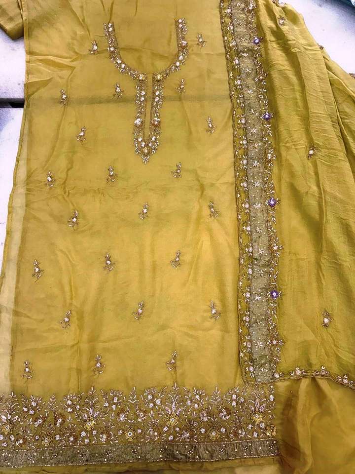 ชุดอินเดียปากีสถานดีไซน์ใหม่ชุดปาร์ตี้ผ้าออร์แกนซ่าผ้าโปร่งบางสวยงามปักด้วยมือแบบแฟชั่น