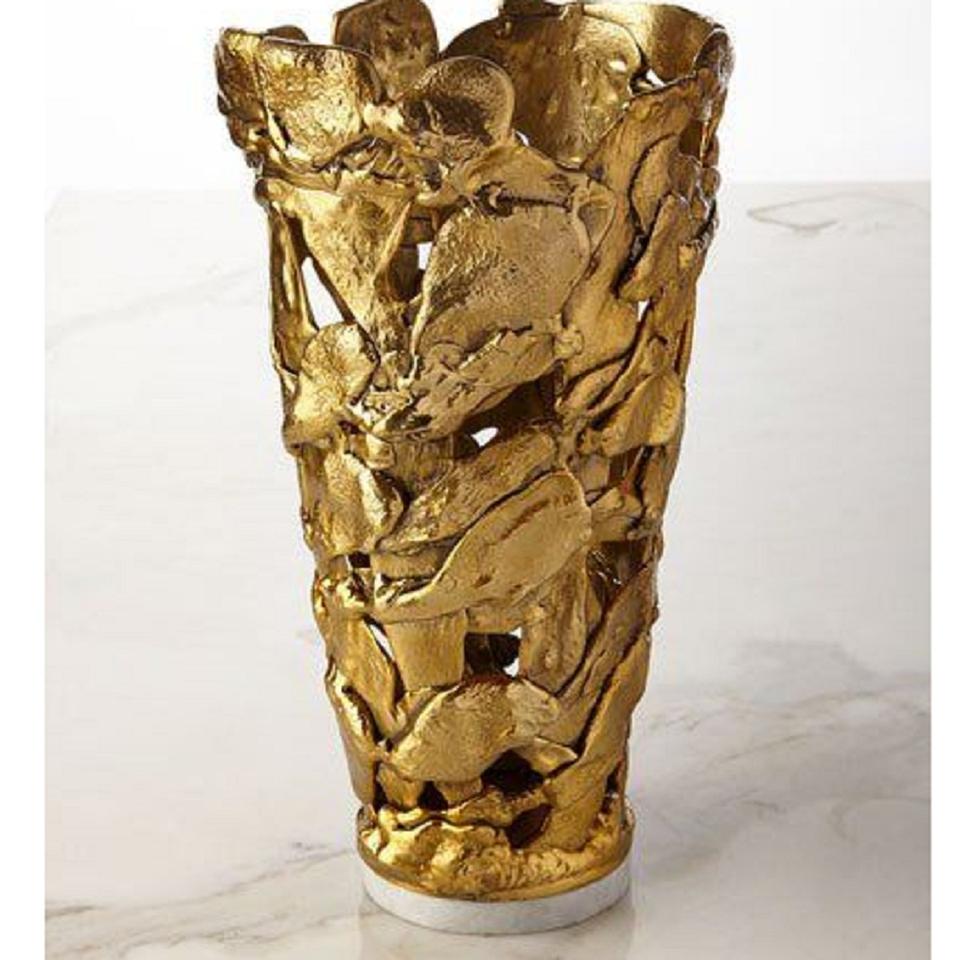 แจกันโลหะดีไซน์ทันสมัยสำหรับตกแต่งบ้าน | แจกันดอกไม้ทองเหลืองตกแต่งสุดหรู
