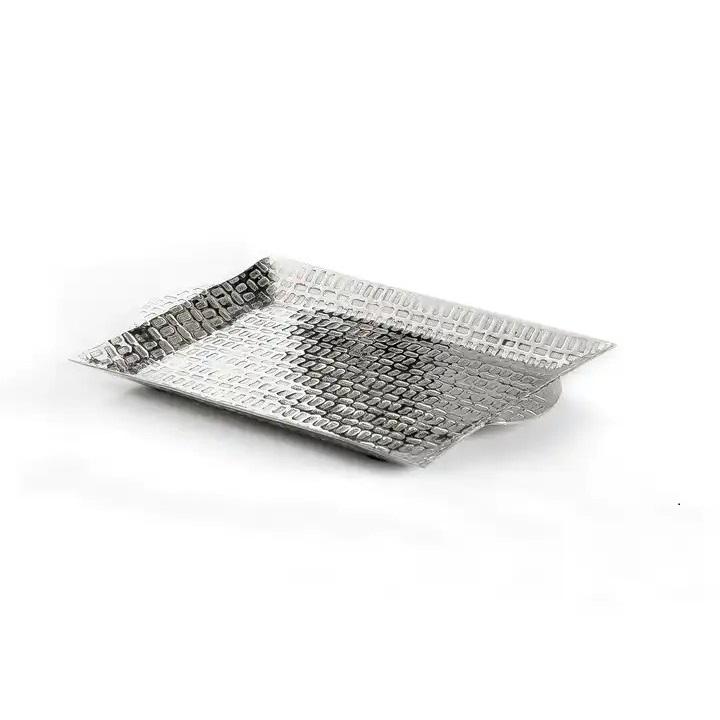ถาดเสิร์ฟอาหารรูปไข่ดีไซน์ทันสมัยถาดเสิร์ฟอาหารโลหะเงินลายนูนสำหรับบ้านและโรงแรม