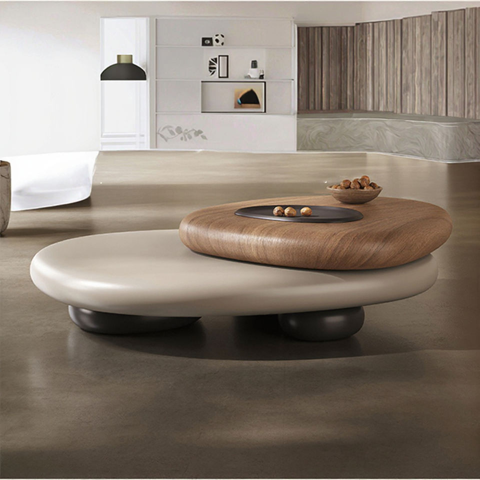 โต๊ะกาแฟกระจกแบบหมุนได้ทนทานดีไซน์ทันสมัยห้องนั่งเล่นหรูหราย้อนยุคศูนย์ไม้ที่ไม่เรียบแบบสร้างสรรค์