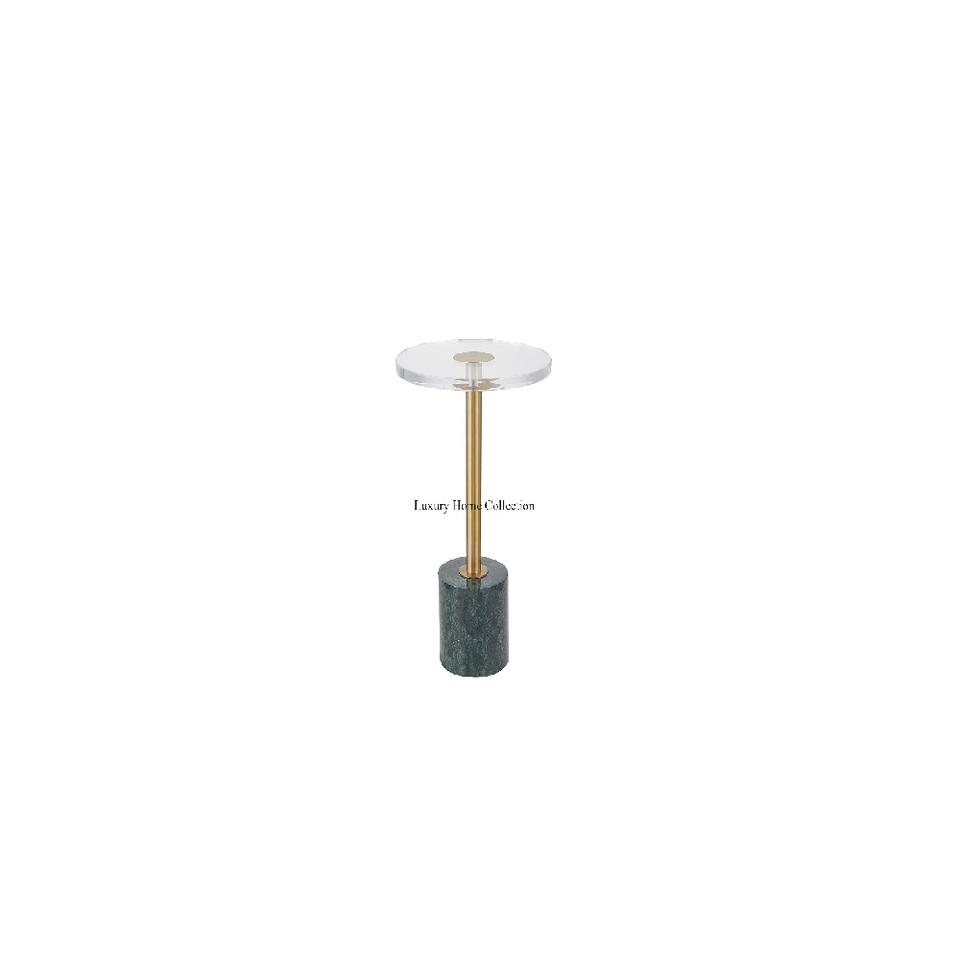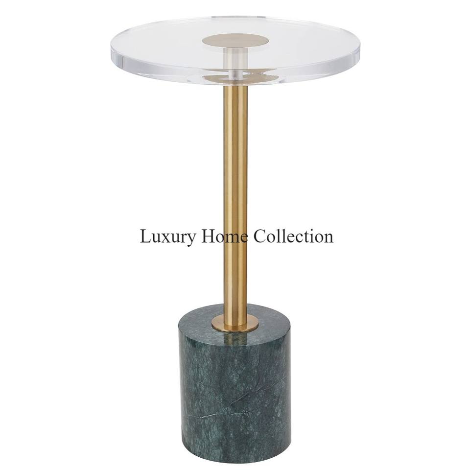 โต๊ะข้างดีไซน์ทันสมัยพร้อมท่อโลหะสีทองและฐานหินอ่อนด้านบนกระจกทรงกระบอกโบราณรูปทรงแฟนซี