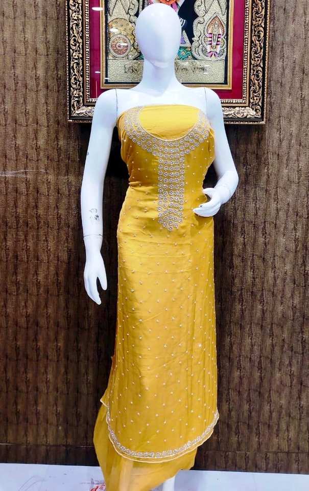 ชุดสูทผ้าไหมสำหรับผู้หญิงชุดอินเดียและปากีสถานชุดเย็บปักด้วยมือดีไซน์ทันสมัย