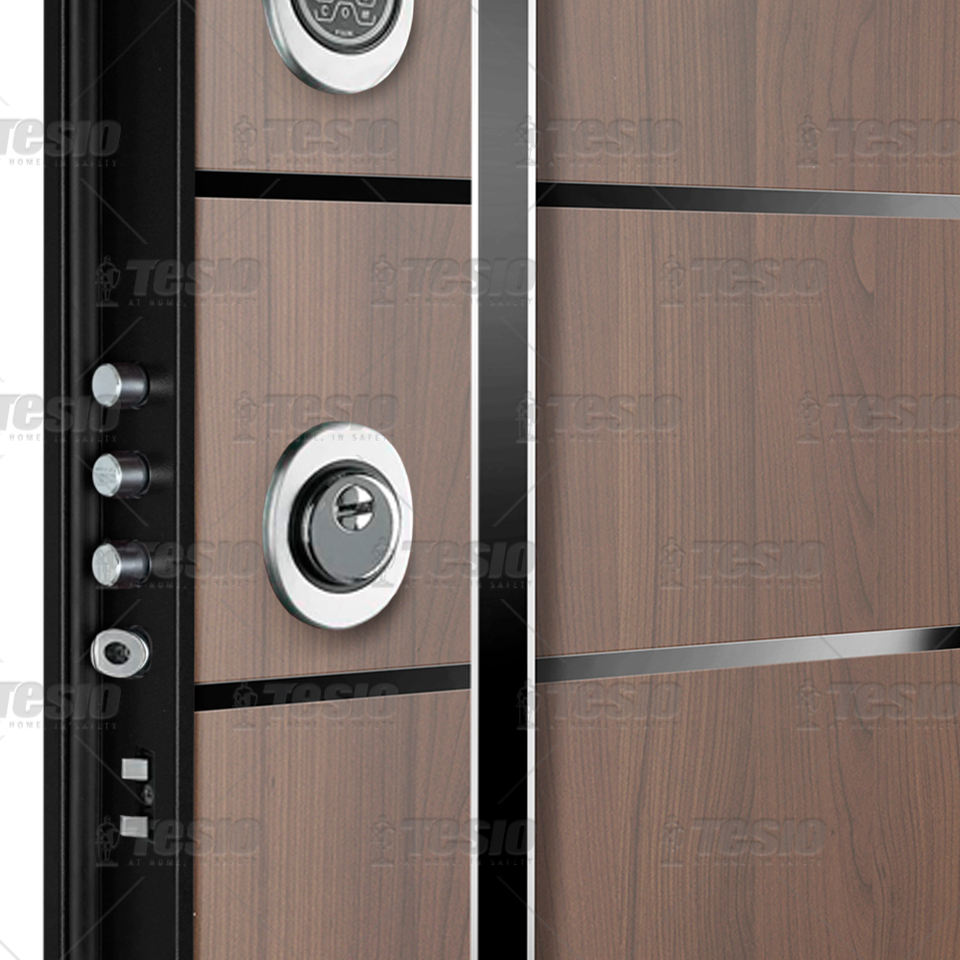 External Panel:Aluminium pantographed model NOR013 finish walnut with inserts