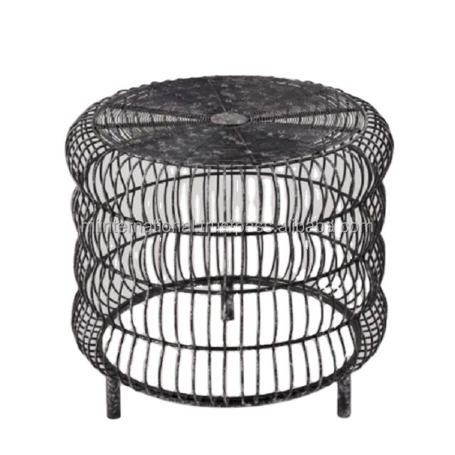 โต๊ะข้างลวดเหล็กทรงกลมดีไซน์ทันสมัยเฟอร์นิเจอร์ห้องนั่งเล่นคุณภาพสูงตกแต่งบ้านด้วยผงสีดำ