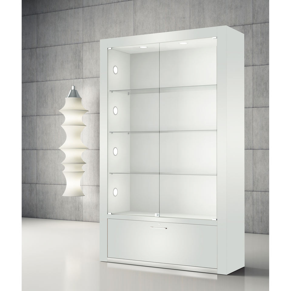 ตู้โชว์ทันสมัย 120x40x196 ซม. สีขาวเงา ไฟ LED ประตูกระจกนิรภัย ตู้เก็บของแบบมีกุญแจล็อค