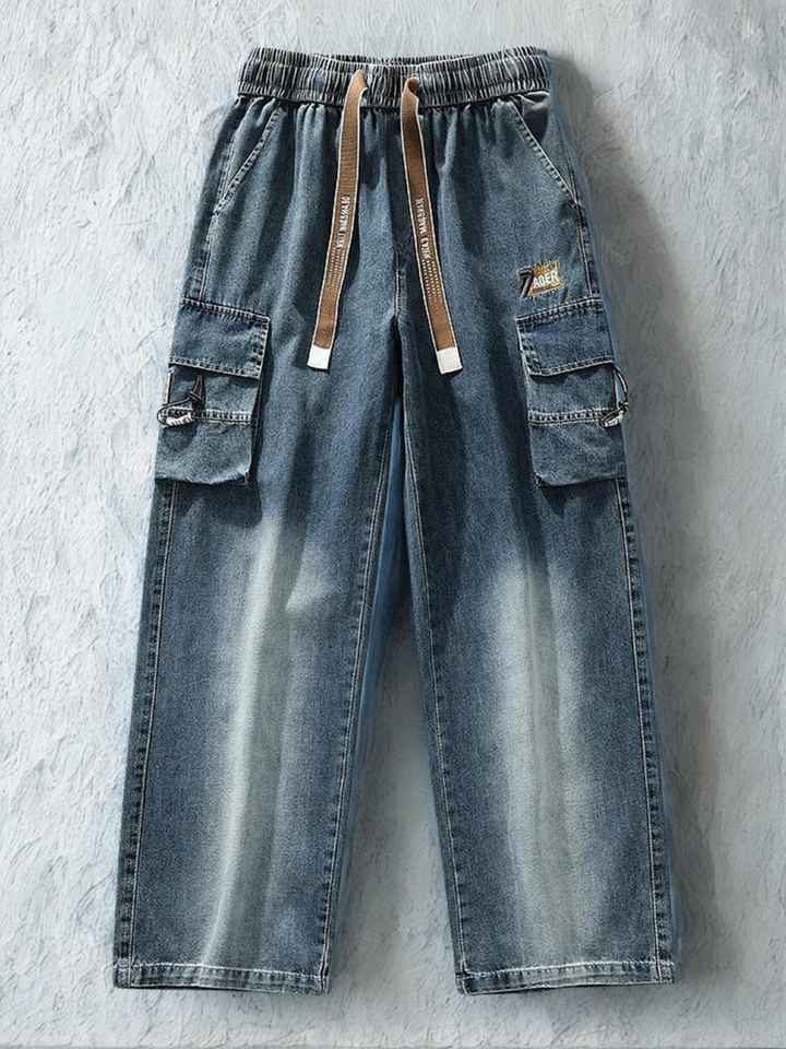 กางเกงยีนส์ผ้าฝ้ายสีน้ำเงินสำหรับ Ms-wc-001งานหัตถกรรมยุค90แบบทันสมัยปรับขนาดได้ตามต้องการ