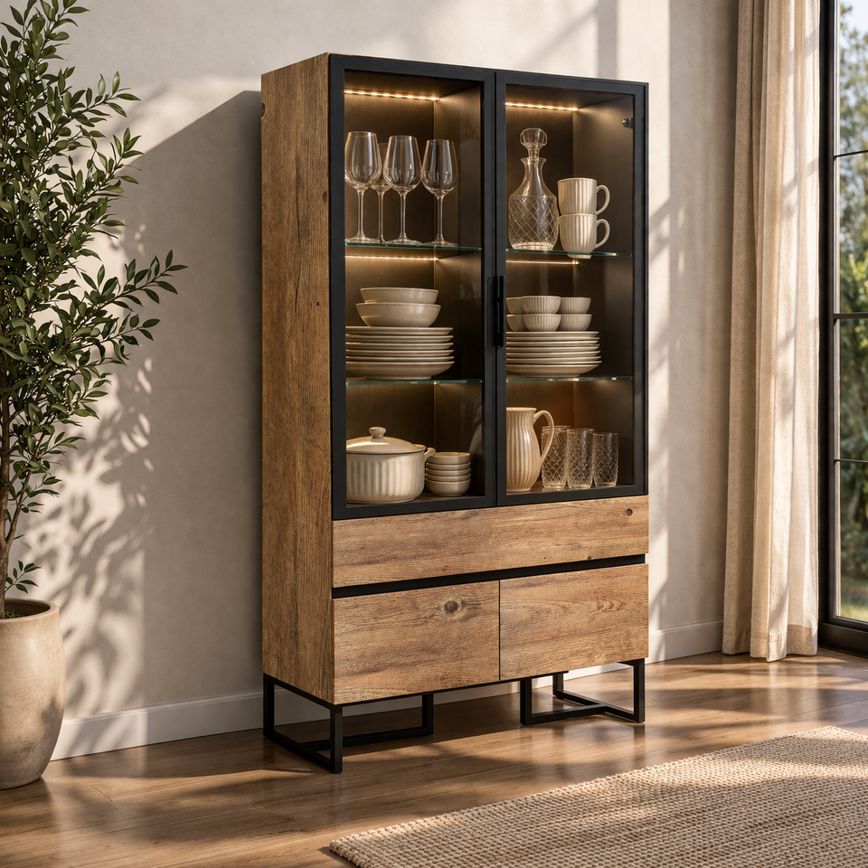 ตู้เก็บจานชามคู่ทันสมัย บานกระจก ชั้นวางของ สำหรับห้องรับประทานอาหารและห้องครัว คุณภาพพรีเมียม ทนทาน ผิวไม้เคลือบพิเศษ