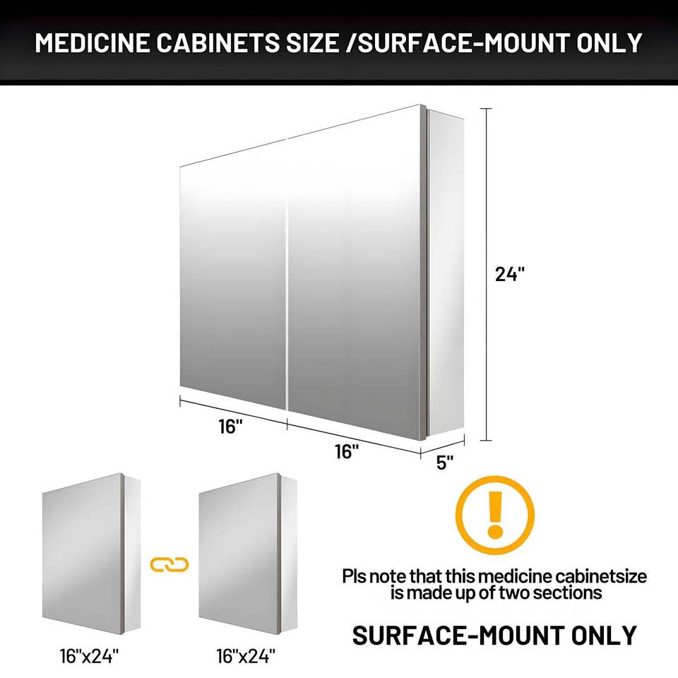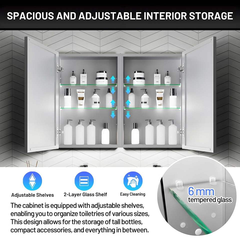 ตู้กระจกติดผนังสองประตูห้องน้ำทันสมัยพร้อมที่เก็บของและสะท้อนแสงใส