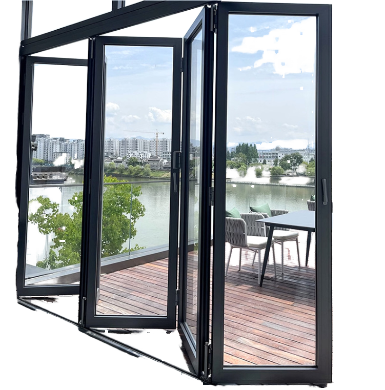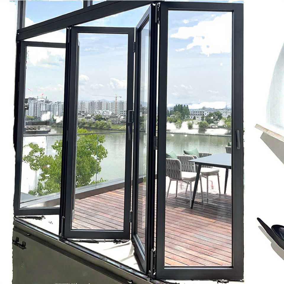 ประตูบานเฟี้ยมพับได้แบบกระจกสองชั้น รุ่น QiFan QF-53 สำหรับระเบียง ฉนวนกันความร้อน โครงอะลูมิเนียมอัลลอยด์ แบบเปิดด้านข้าง ผิวสแตนเลส