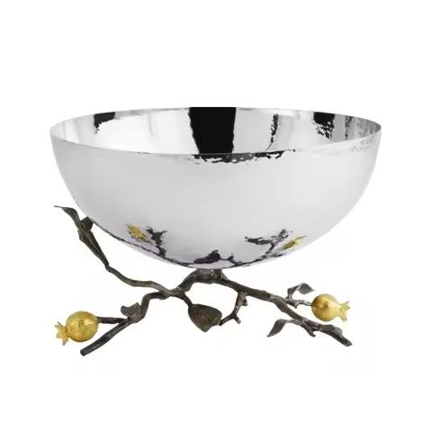 ชามโลหะสีแดงและสีเงินแบบทูโทนทันสมัย พร้อมผิวมันเงา เหมาะสำหรับตกแต่งโต๊ะอาหารและตกแต่งบ้านอย่างหรูหรา