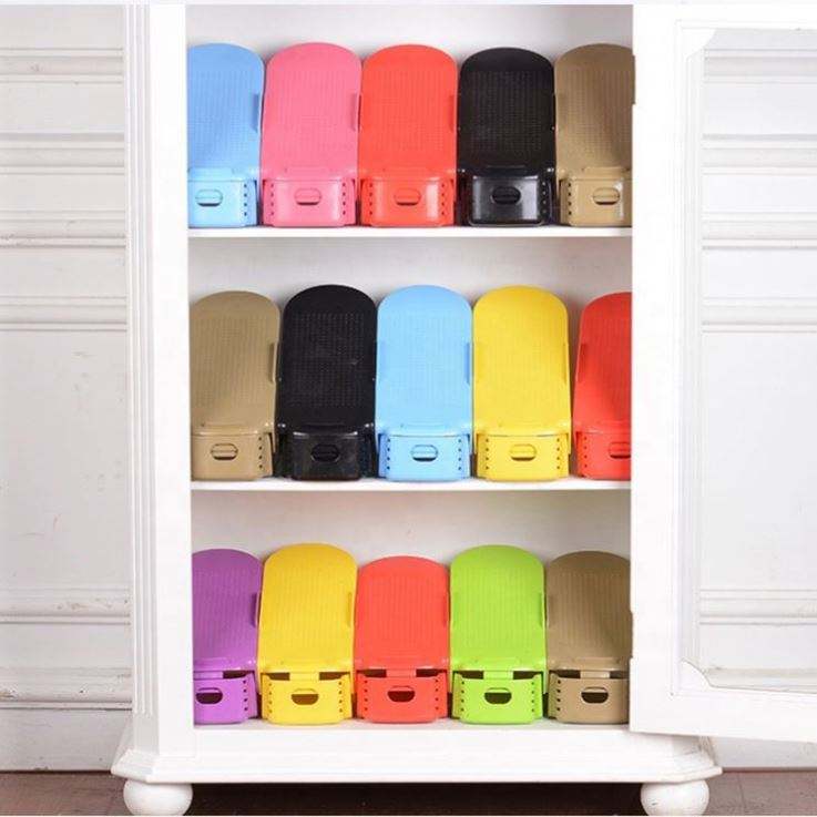 Modern Durable Adjustable Shoe Organizer Footwear Support Slot Saving Living Room Colorful PP Plastic Cabinet Closet Stand Shoes