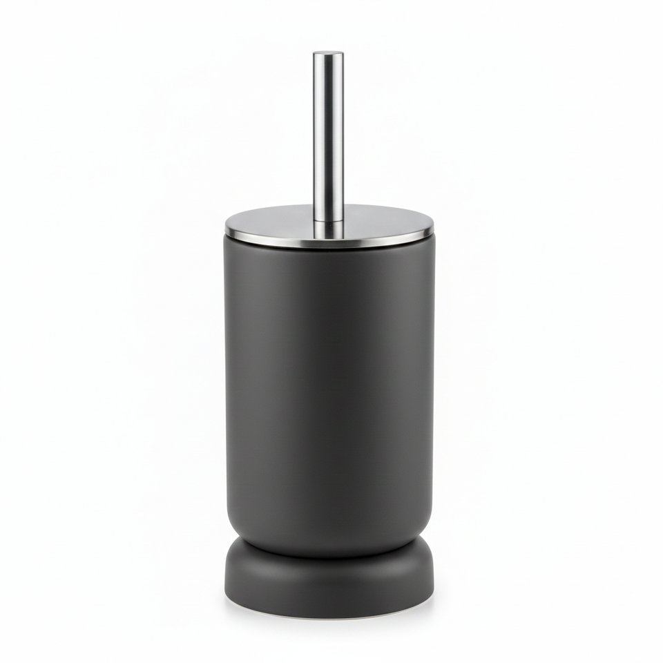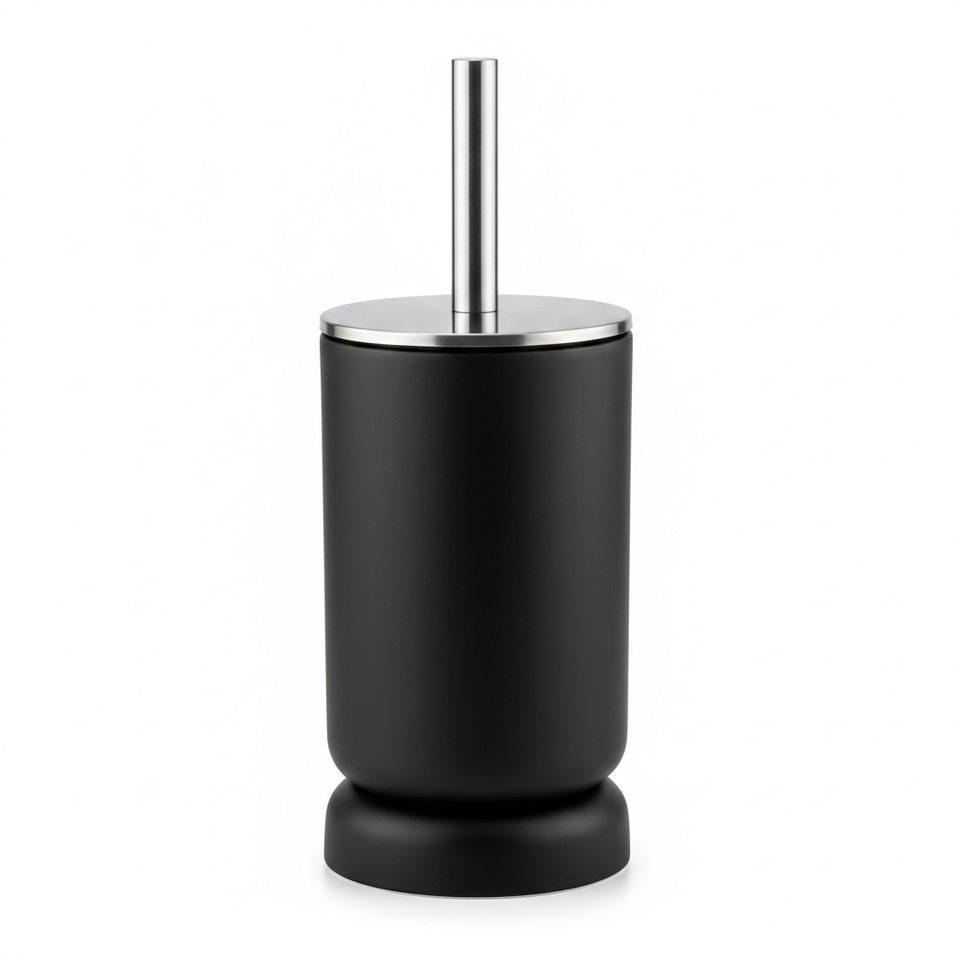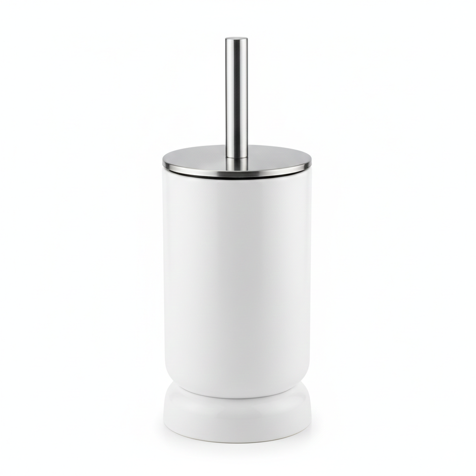ชุดแปรงขัดห้องน้ำแบบปิดทึบ ดีไซน์ทันสมัย เป็นมิตรกับสิ่งแวดล้อม พร้อมฝาปิดสแตนเลสเซรามิกสีขาว สำหรับทำความสะอาดและฆ่าเชื้อในห้องน้ำโรงแรม