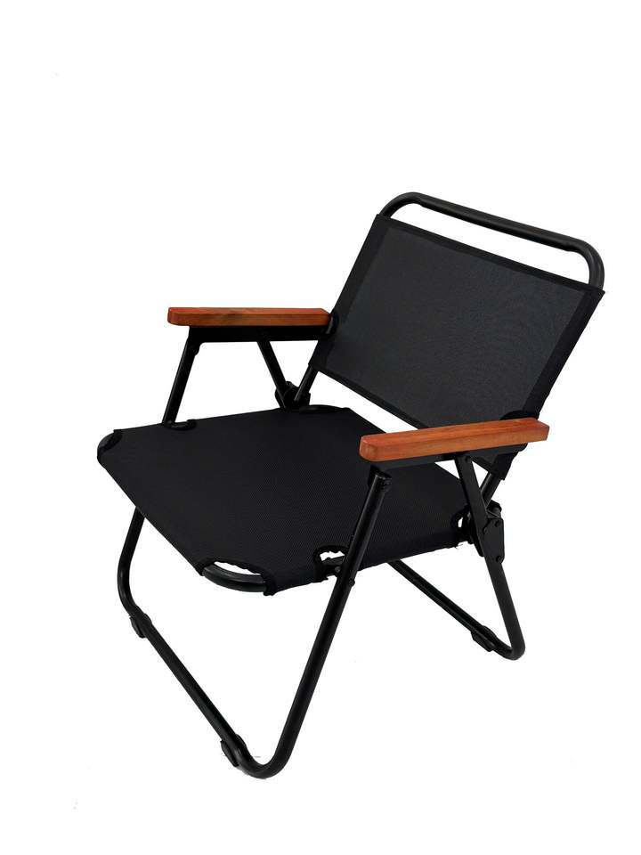 เก้าอี้พักผ่อนพับได้โลหะน้ำหนักเบา ทนทาน เป็นมิตรกับสิ่งแวดล้อม ทันสมัย พร้อมที่วางแขนไม้ สำหรับใช้งานกลางแจ้ง ชายหาด ตั้งแคมป์ สีดำ