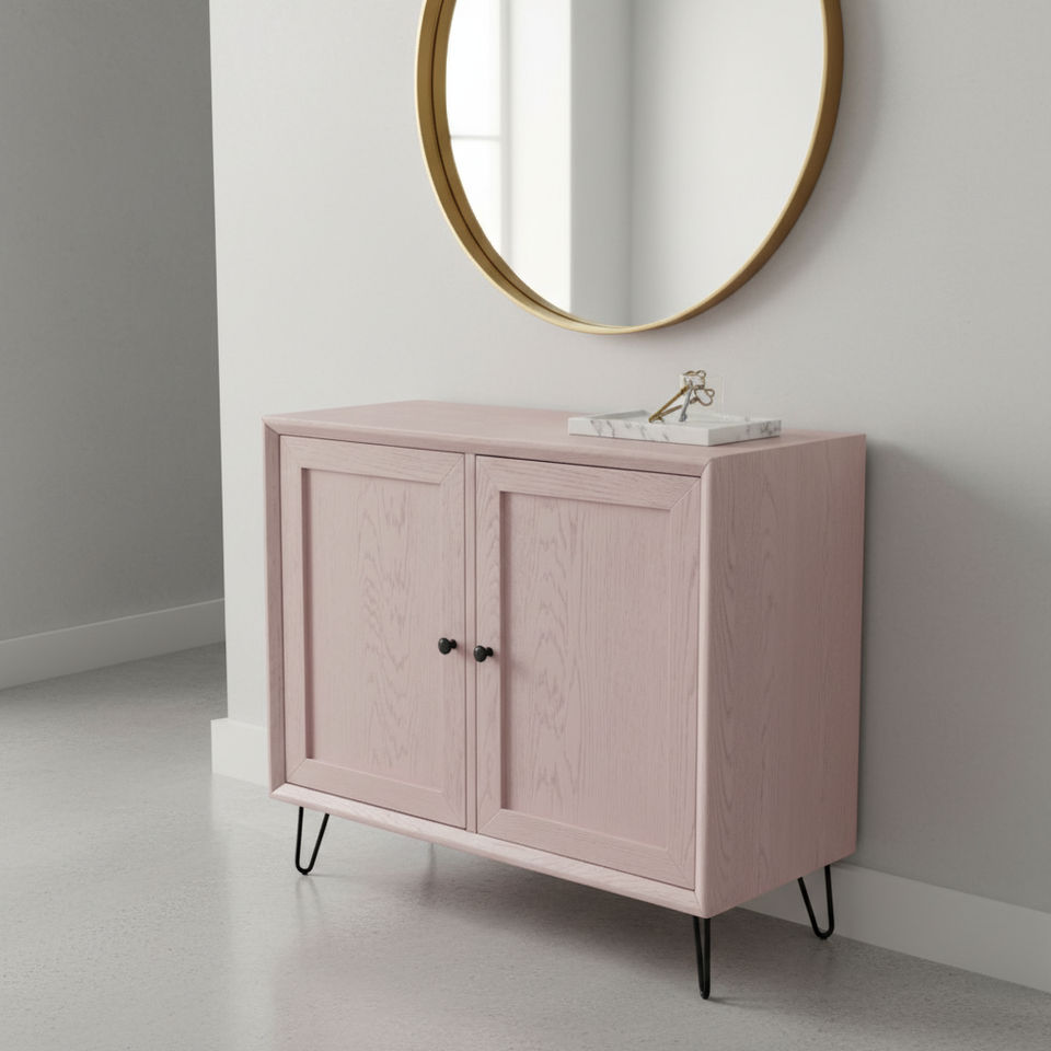 ตู้ห้องนั่งเล่นทันสมัย รักษ์โลก ทนทาน 2 ประตู สีชมพูอมเทา