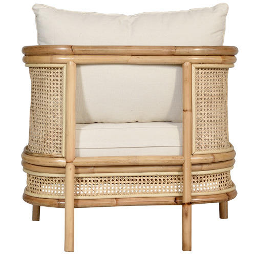 เก้าอี้หวายกลางแจ้งทันสมัย ทนทาน เป็นมิตรกับสิ่งแวดล้อม พร้อมโครงหวายแท้และเบาะกันน้ำสำหรับใช้งานกลางแจ้ง