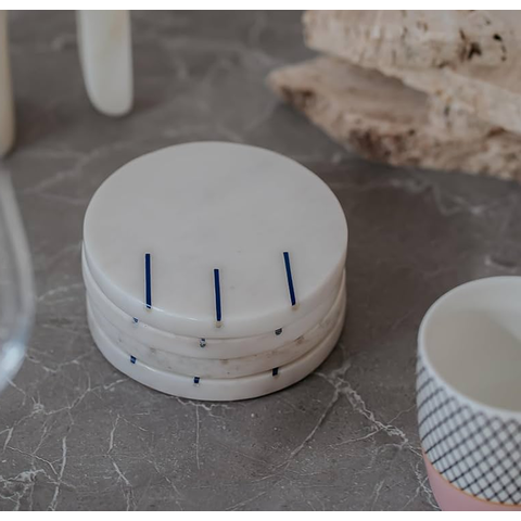 แผ่นรองแก้วหินอ่อนแบบรักษ์โลกทันสมัย ทนทาน ล้างทำความสะอาดได้ อุปกรณ์ตกแต่งโต๊ะหินธรรมชาติ ของใช้บนโต๊ะอาหารเพื่อการส่งเสริมการขาย