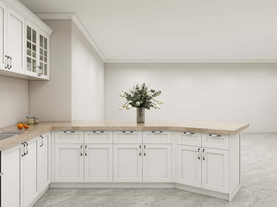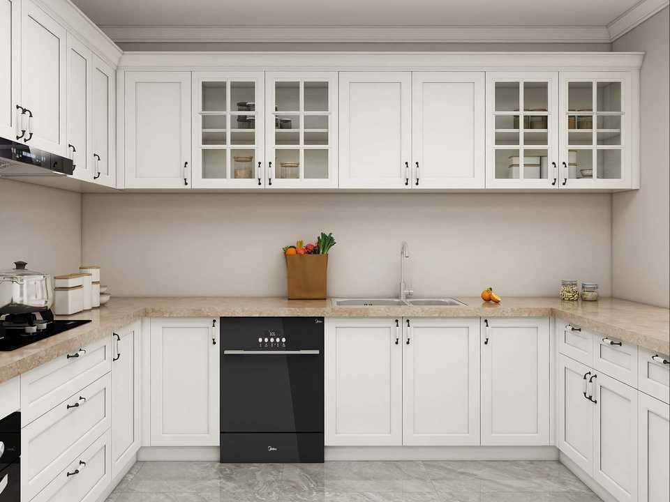 ตู้ครัวโมเดิร์นแบบโมดูลาร์รักษ์โลก สไตล์เชคเกอร์ สีขาว ทำจากไม้อัดทนทาน พร้อมบานกระจก ผนังกันเปื้อนทำจากเมลามีน