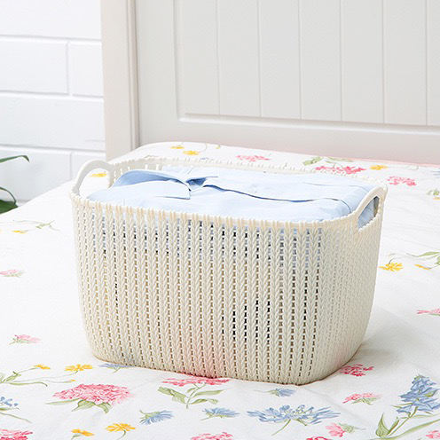 ตะกร้าใส่ผ้าพลาสติกทรงสี่เหลี่ยมผืนผ้าเป็นมิตรต่อสิ่งแวดล้อมตะกร้าใส่ผ้าอเนกประสงค์สำหรับจัดระเบียบบ้านแบบฉีดความจุ6-10L ทำจาก PP