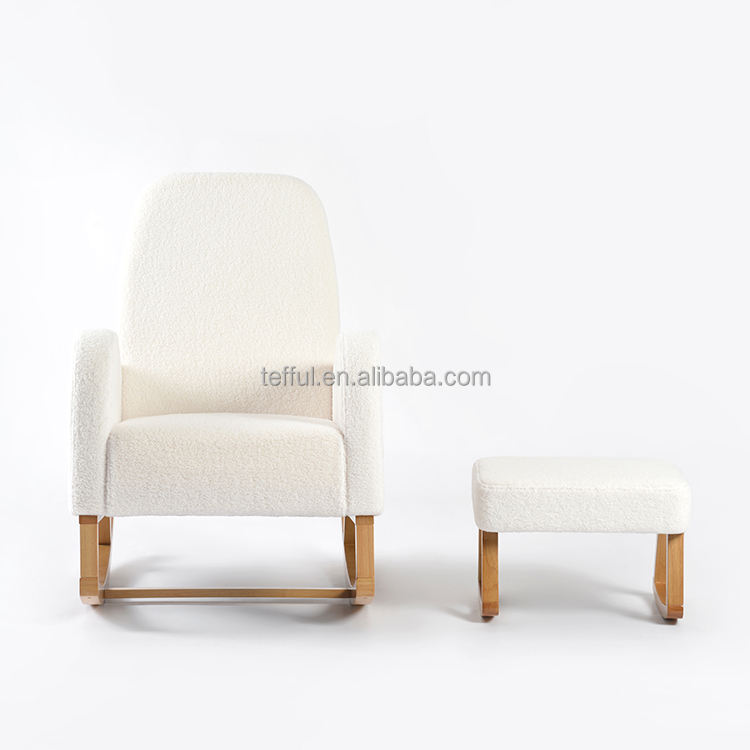 เก้าอี้โยกแบบโมดูลาร์ทันสมัย ผลิตจากวัสดุที่เป็นมิตรต่อสิ่งแวดล้อม หุ้มด้วยผ้าบุเนื้อนุ่มสบาย พร้อมขาไม้โพธิ์ สำหรับใช้ในบ้าน สำนักงาน หรือห้องนั่งเล่น