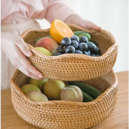 ตะกร้าขนมปังอเนกประสงค์ทำจากหวายธรรมชาติทอมือสไตล์เวียดนามที่ทันสมัย เป็นมิตรกับสิ่งแวดล้อม ปรับแต่งได้ สวยงาม เหมาะสำหรับใช้ในบ้านและสำนักงาน