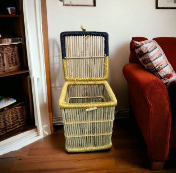 ตะกร้าซักผ้าหวายไม้ไผ่กล่องเก็บเสื้อผ้าหนังสือ