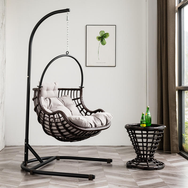 เก้าอี้ชิงช้าหวายทรงไข่ในร่ม/กลางแจ้งรูปทรงไข่ทันสมัยสำหรับห้องนอนโรงแรมสวนหรือวิลล่าเฟอร์นิเจอร์อเนกประสงค์กลางแจ้ง