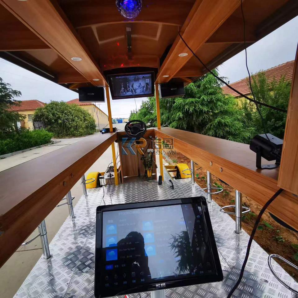 จักรยานไฟฟ้าทันสมัยสำหรับ 13 คน ความเร็ว 30 กม./ชม. ระบบเบรกดิสก์สี่ล้อ พร้อมระบบช่วยปั่น สำหรับเที่ยวชมสถานที่และมีบาร์เคลื่อนที่