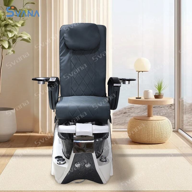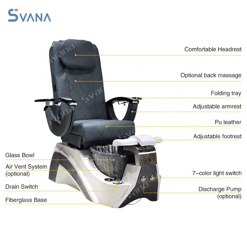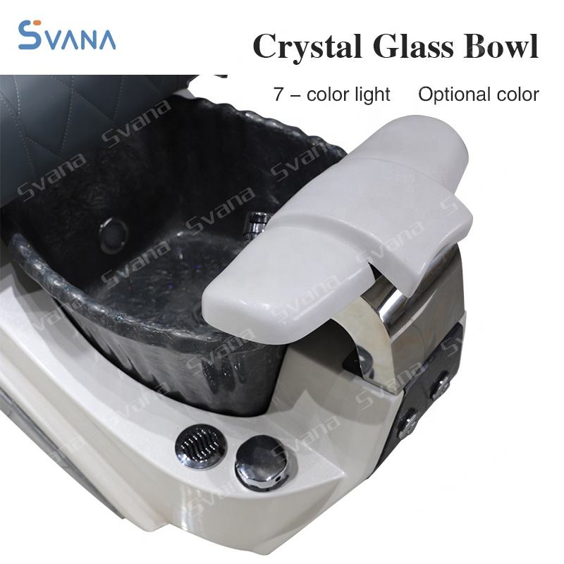 เก้าอี้ทำเล็บมืออาชีพ SVANA รุ่นโมเดิร์น พร้อมฐานไฟเบอร์กลาสและอ่างคริสตัลแก้ว สำหรับใช้ในร้านทำเล็บ