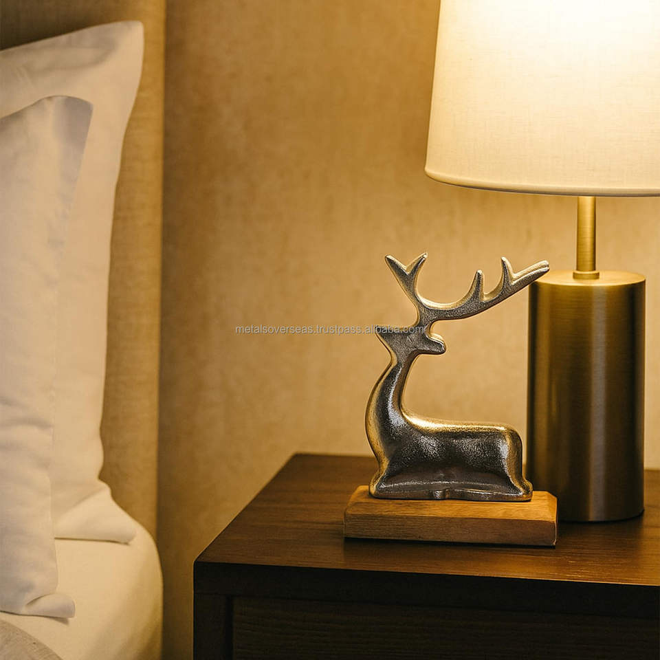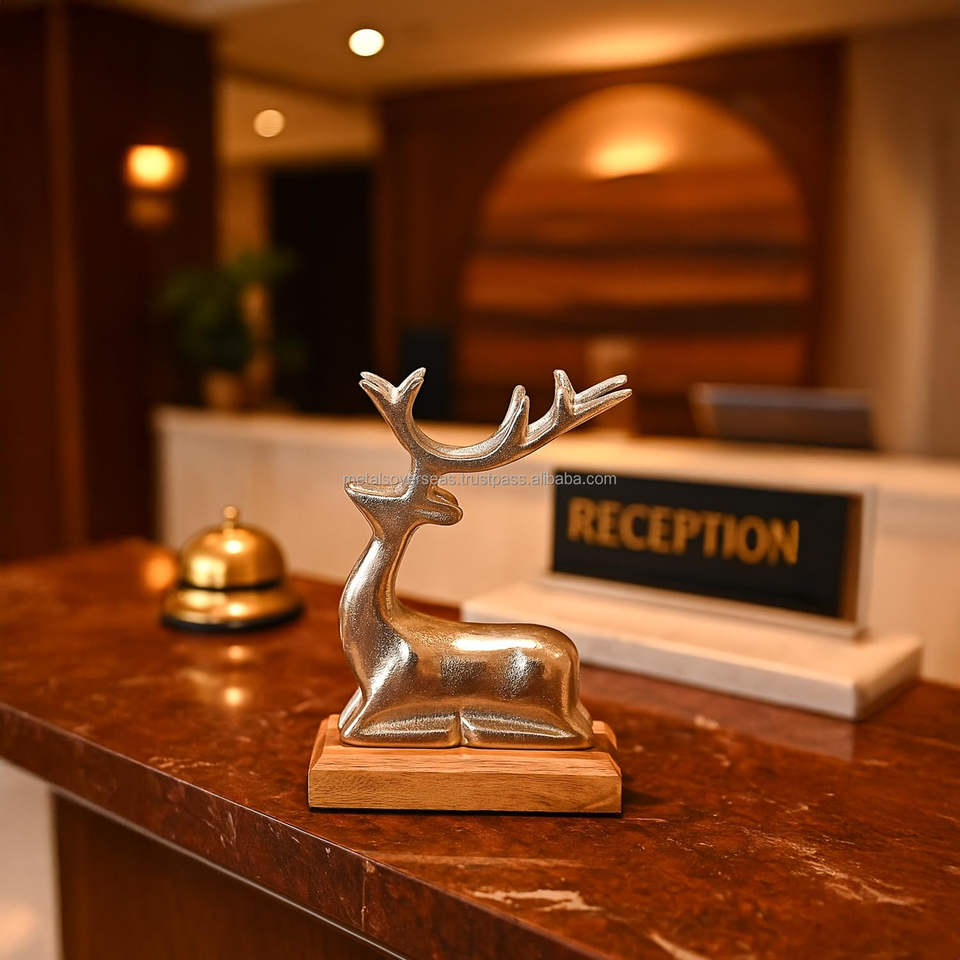 ประติมากรรมกวางเรนเดียร์ทำมือจากโลหะสีทอง ดีไซน์หรูหราทันสมัย ฐานไม้ แข็งแรง ทนทาน คุณภาพเยี่ยม เหมาะสำหรับตกแต่งบ้านในเทศกาลคริสต์มาส งานแต่งงาน และโต๊ะอาหาร