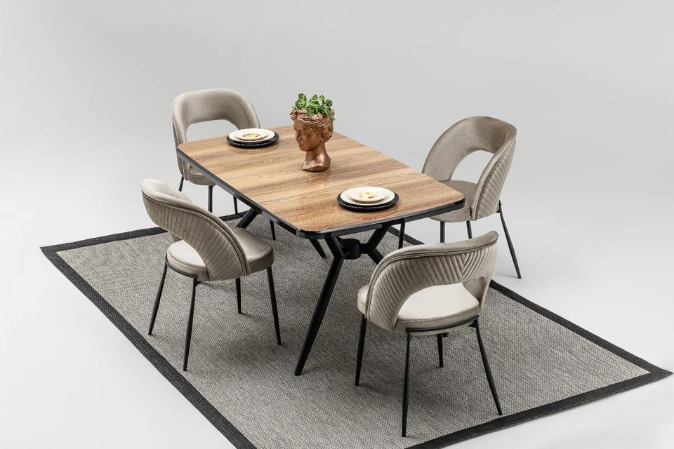 ชุดเฟอร์นิเจอร์ห้องอาหารสแตนเลสทันสมัย 1 โต๊ะ 6 เก้าอี้ เพิ่มความหรูหราให้กับห้องครัว ห้องนั่งเล่น หรือบ้านพักตากอากาศ