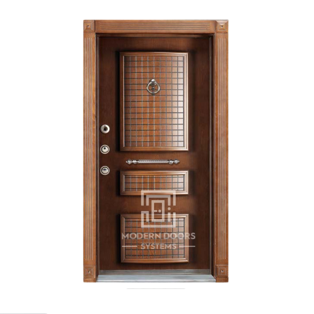 ประตูเหล็กนิรภัยลายลายนูนทันสมัย เปิดด้วยมือ ทนทาน ทนไฟ เหมาะสำหรับทางเข้าอพาร์ทเมนต์และโรงแรม