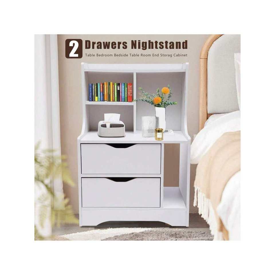 Modern End Table Large Storage Drawers 2 Drawers Nightstand Cabinet Bedside Furniture for Bedroom Living Room Elegant Bed Side